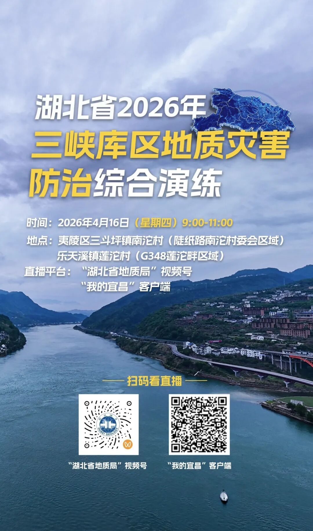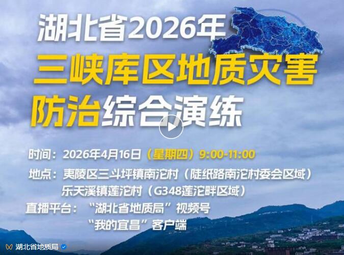 湖北省地质局,将在04月16日 08:00 直播预约湖北省2026年三峡库区地灾防治演练