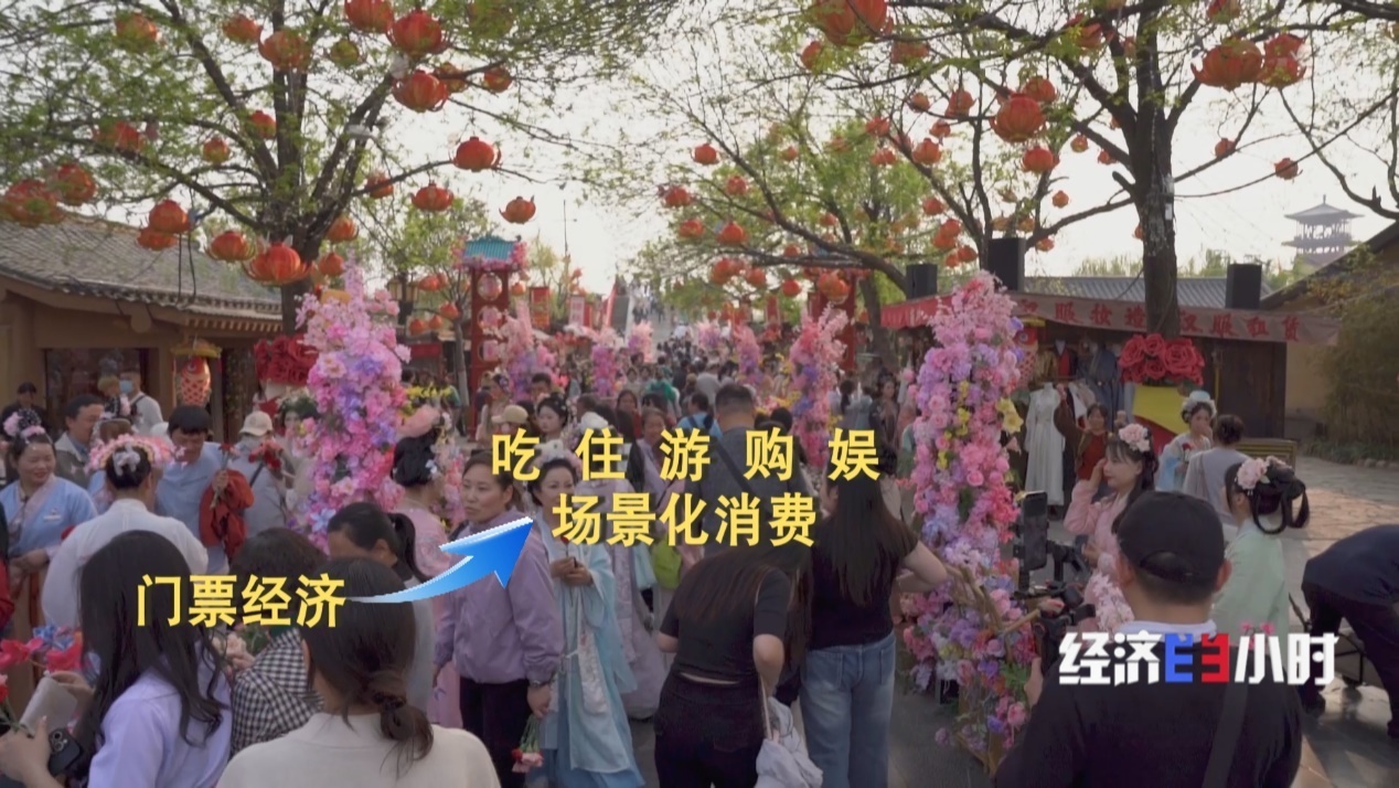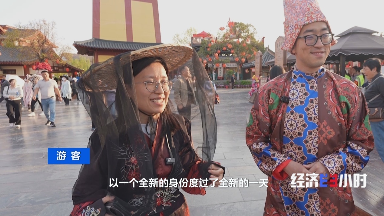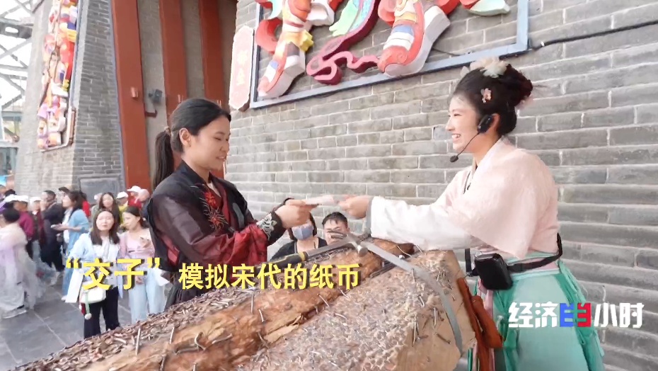 在河南开封一个景区,游客们换上服装、领取身份牌,仿佛走进清明上河图的画卷之中。北宋时期的人文风俗、市井生活铺展开来。