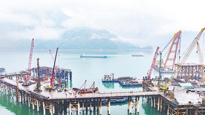 湖北日报讯 (记者黄善君、通讯员史丽、彭强、郭家)4月13日,三峡库区秭归县茅坪镇太平溪水道右岸,三峡枢纽江南成品油翻坝项目坝上码头工程施工现场,随着5#阀室平台墩台顺利浇筑,三峡成品油翻坝码头控制性工程建设“第一墩”为后续工程快速推进夯实了基础。