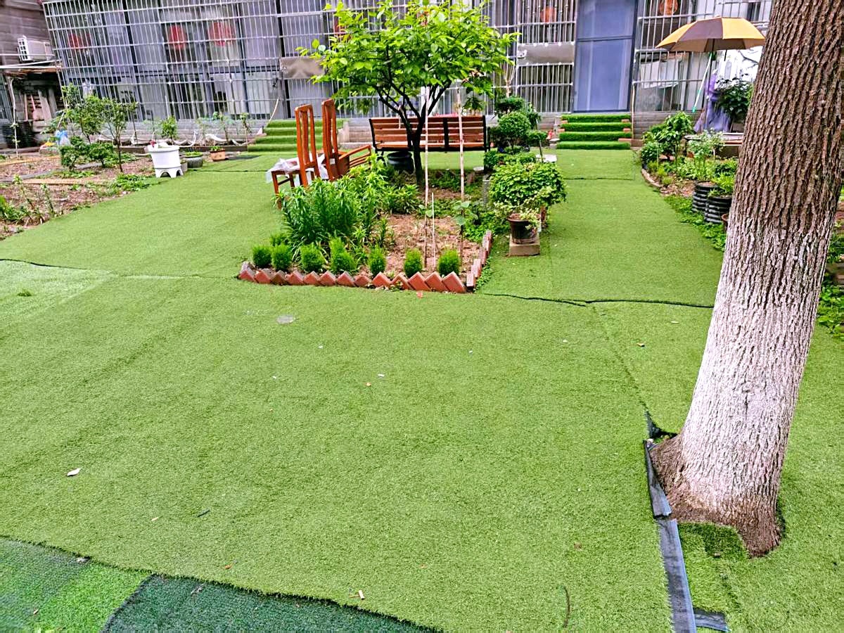记者探访发现,该小区10栋、11栋楼下私人菜地的情况最为突出。一楼住户几乎家家户户都将公共绿化带改造成了自家的小菜园,菜地旁边,随意堆放着锄头、铁锹等种地工具,还有几个用来沤肥的大缸。部分住户还搭建了小棚子,用来存放工具或是饲养鸡鸭。除此之外,还有少数住户铲除绿化后,铺上了仿真草坪,把公共空间当成了自家花园。记者还注意到,小区内还有几处绿地正在被“改造”,地面绿化带已经被铲平。