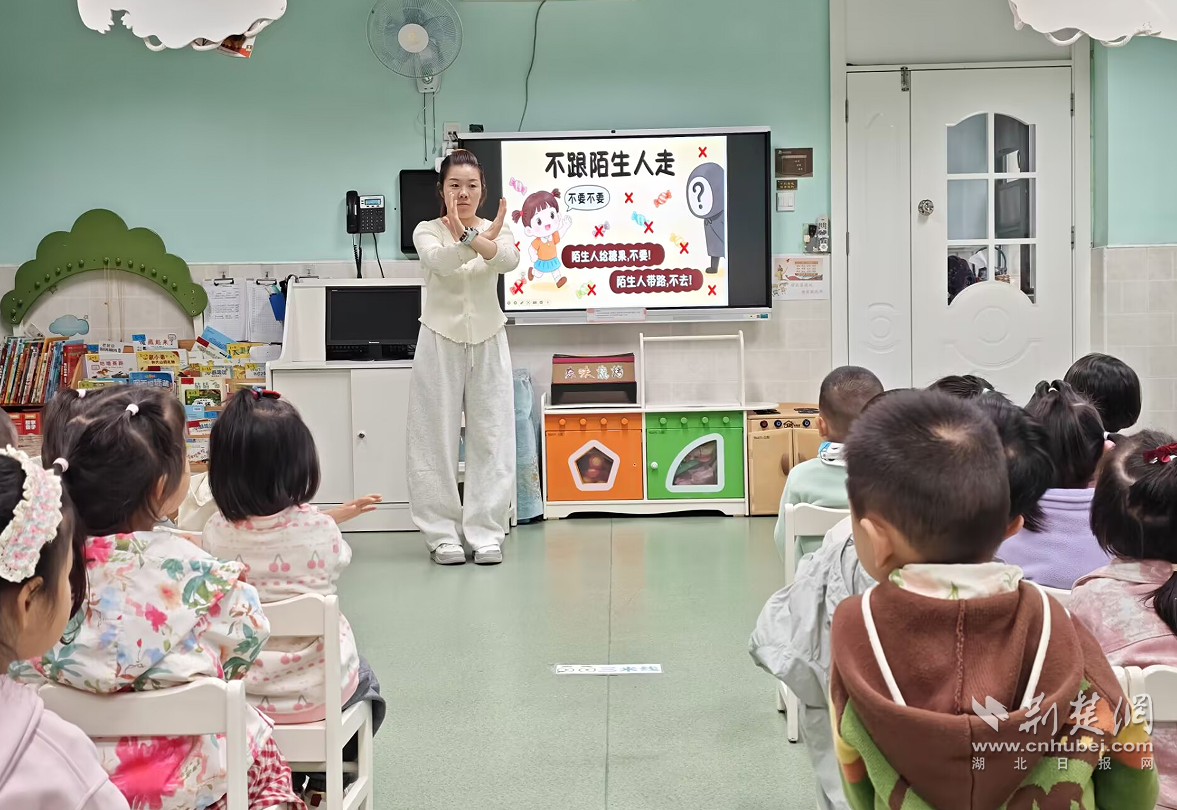 荆楚网(湖北日报网)讯(记者何鹏 通讯员冷越青、王潇)4月15日,在第9个全民国家安全教育日来临之际,江汉区盛世红苗幼儿园以“国家安全,从‘心’守护”为主题,面向小班幼儿开展沉浸式防拐骗安全演练活动。本次活动创新采用家长志愿者+校园保安联合扮演“拐骗者”的形式,将安全教育融入真实场景,以趣味化、体验化的方式为幼儿筑牢安全防护墙,让国家安全理念在童心落地生根。
