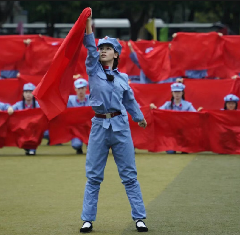 在课程思政建设中,中心持续深挖体育项目背后的思政内涵,潜移默化地培育学生的爱国情怀、集体主义精神和顽强拼搏精神。这一育人理念,在2025年校运会上得到了生动诠释。校运会以“红安红、东湖美”为主题,设置“红安之歌、民族之魂、东湖之美”三个篇章,将红色舞蹈与武术、龙狮等体育技能深度融合,同时融入斗牛舞、探戈舞等特色形式。200位演员承载着200位红安将军的精神寄托,以灵动的舞姿、刚劲的技艺,生动演绎“小小红安,人人好汉”的英雄气概,用青春致敬铁血荣光,让在场学子在震撼中感悟红色精神、汲取奋进力量。