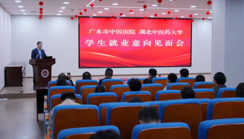 4 月 15 日上午,广水市中医医院面向湖北中医药大学专项招聘遴选的意向硕士研究生,成功举办高层次人才就业意向专场见面会,现场签下老年病、肛肠、骨伤、脑病、脾胃、心肺等专业12 份入职意向书,为医院人才队伍建设注入新鲜血液。