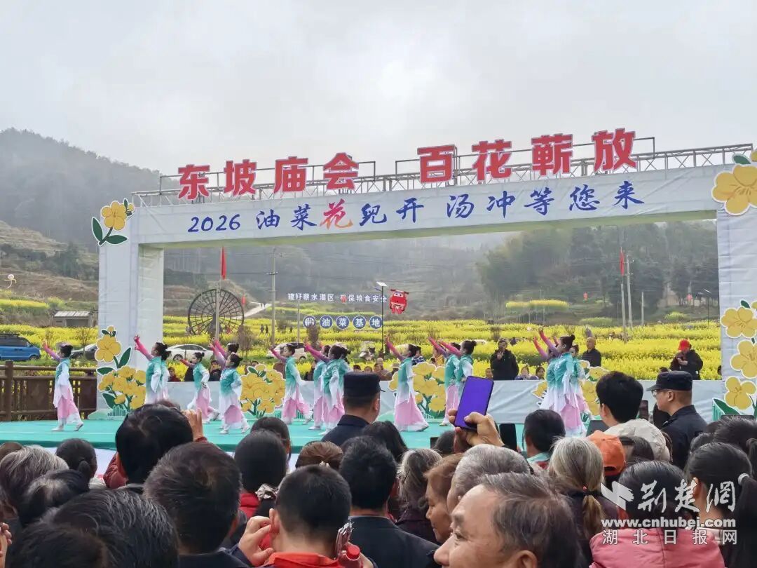 在刘河镇“花海鹭乡”美丽乡村片区,“东坡庙会·百花蕲放”蕲春县“六进六送”新时代文明实践活动热闹非凡。汤冲、张铺、胡志高三村联动,万亩油菜花海中,民俗锣鼓、非遗展演、黄梅戏等活动轮番登场,拔河比赛的呐喊声此起彼伏,同步举办的抖音大赛吸引众多游客拍摄短视频并分享到网络平台,“花海鹭乡”的知名度迅速提升。