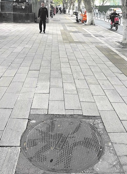 “这块井盖比周边其他井盖都大一圈,一眼就能注意到。”4月16日,葛先生带领极目新闻记者来到万松园路一家商店门口的人行道上,指着一处井盖说。