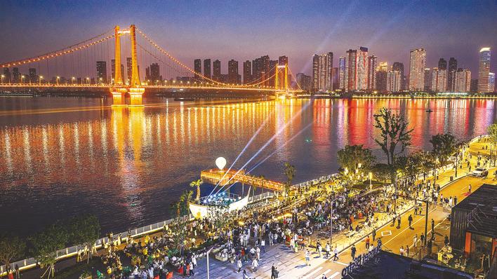 4月18日傍晚,晚霞还未散去,武昌湾1956公园落日音乐会已开始上演,长江边上聚满了听音乐的市民游客。该公园自2025年9月底开放后,成为武汉热门文化地标,其露天音乐会是核心特色活动之一。 在这里,不仅能和多座长江大桥合影,还可以看日落,赏晚霞!晚上还会有落日音乐会,结合自然景观与工业遗迹,为市民游客带来浪漫体验。(湖北日报全媒记者 朱熙勇 摄)
