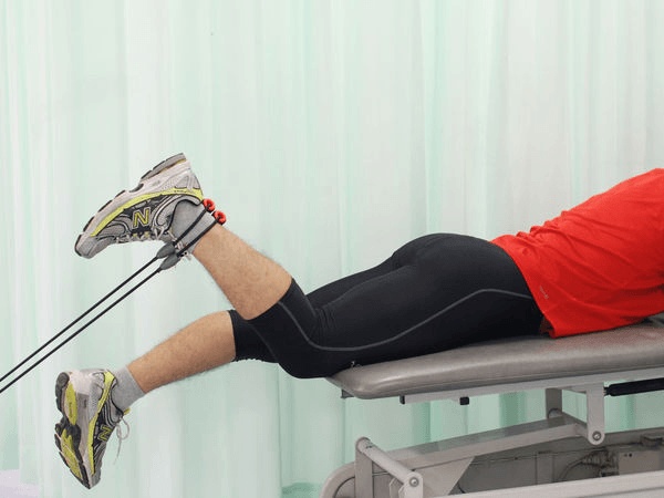 保持大腿不动,发力带动小腿向上弯曲,脚后跟尽量向臀部方向靠近;过程中要对抗弹力带的拉力,动作缓慢可控,感受大腿后侧腘绳肌的明显收缩。当小腿弯曲到最大幅度时,停留1-2秒,强化肌肉收缩感;随后缓慢控制小腿回到初始伸直状态,还原时依旧要感受弹力带的阻力,不要让小腿快速回落。
