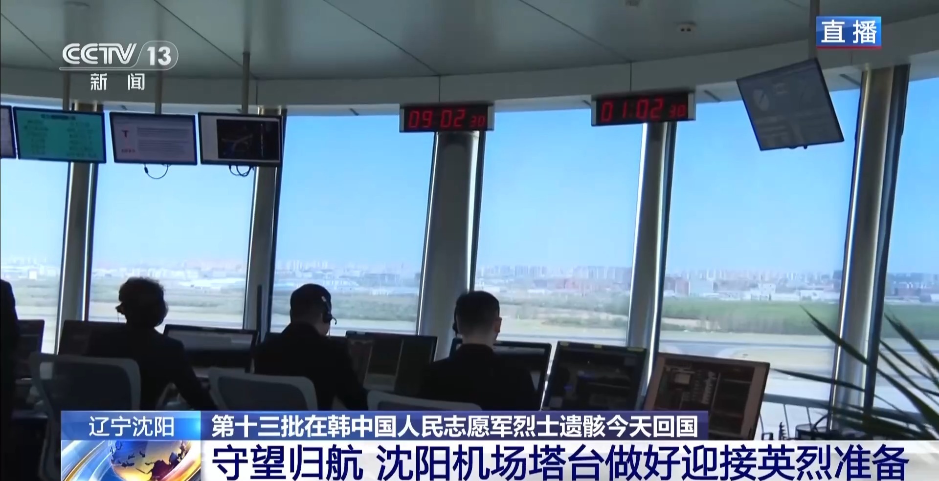 按照计划,接迎第十三批在韩中国人民志愿军烈士遗骸的中国空军运-20B专机,将于今天上午抵达沈阳桃仙国际机场。机场塔台管制室现已全面进入待命状态,各项保障工作准备就绪,记者在现场了解最新情况。