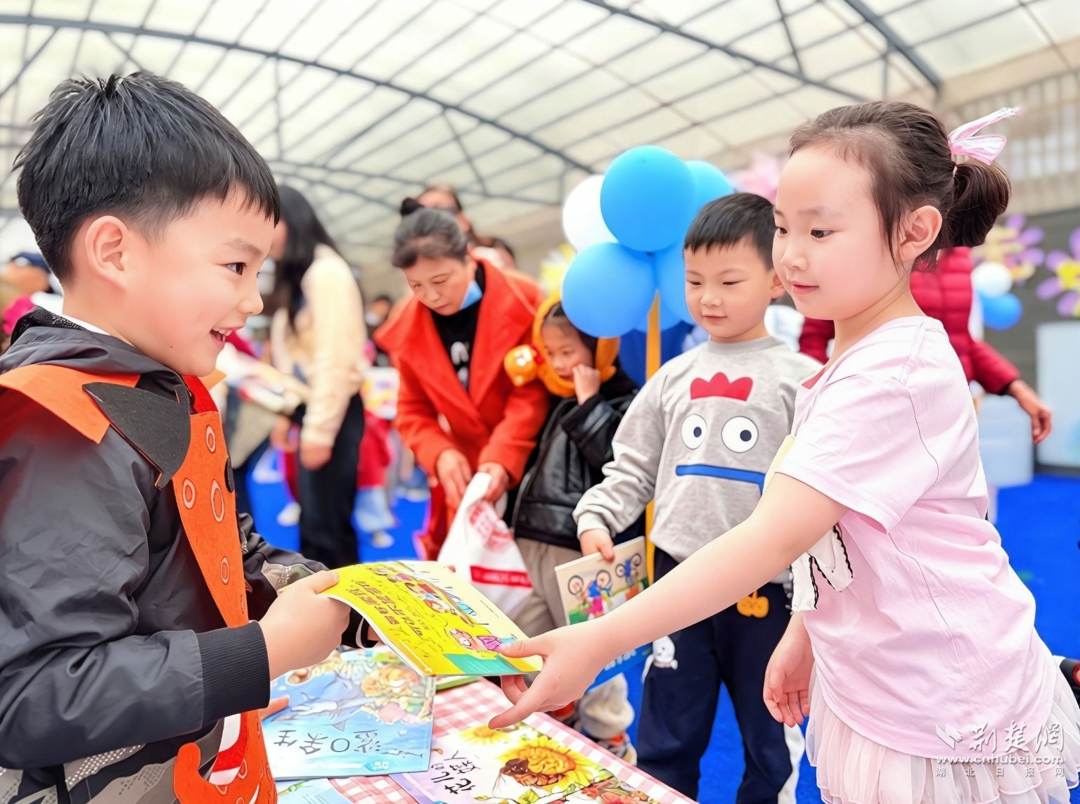 各式摊位整齐有序,绘本图书琳琅满目,创意招牌童趣盎然,小小摊主热情洋溢。孩子们化身“好书推荐官”,把读过的好书摆上摊位,让它们焕发新的生机,同时,也做一回“快乐淘书人”,在书海里寻宝,去遇见更多闪闪发光的好故事。