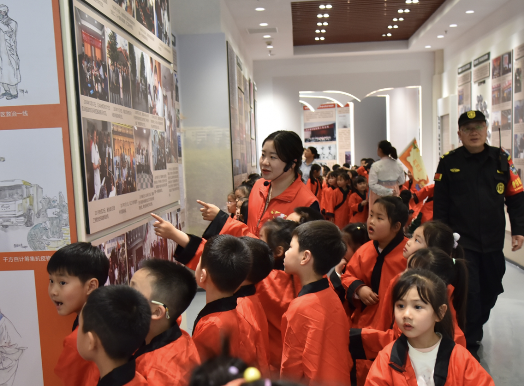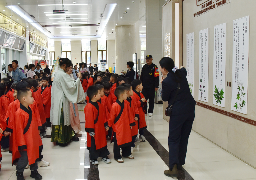 在仁济楼一楼,孩子们跟随健康管理医学科的老师学习八段锦,一招一式间体悟传统养生智慧。在杏林楼一楼,药学部老师带领大家探秘中药房,讲解中医药文化墙的历史渊源,现场还穿插了古筝演奏与“五音疗法”展示,营造出浓厚的中医文化氛围。活动最后,孩子们走进院史馆,在宣讲员的讲述中了解医院发展历程,感受中医药文化的代代传承。