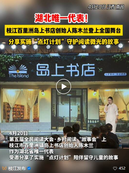 2025年4月,岛上书店搬进新址——一座改造后的废弃粮仓从“物质粮仓”变成了“精神粮仓”。藏书从1000余册增至4.5万余册,全镇儿童年均阅读量从0.8本跃升至4.5本。目前,以陈木兰和300多名乡村阅读推广志愿者,与210个新时代文明实践中心(所、站)、图书馆,200余家机关、企业、学校联动,共开展“乡村阅读”等各类文化活动600余场,已累计接待读者4万余人次。如今来看书的,有捧着绘本的孩子,也有农闲时读书看报的村民。每月主题读书分享会,还吸引了不少读者从外地辗转乘船渡江赶来。
