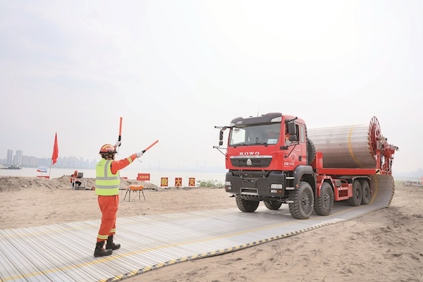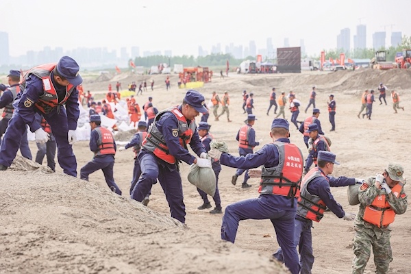 4月24日15时,2026年武汉市“应急使命”防汛抢险救援综合演练,在洪山区天兴洲长江水域拉开序幕,5支队伍、1100余人次开展实战练兵。此次演练是武汉市首次在道路承载力弱、装备受沙尘影响大的长江沙洲区域开展防汛实战化综合演练。参演装备专业化程度高,不仅调动了直升机、大型无人机、硬质机动路面机、水面拖轮、起吊装备,还首次将人行便桥、充气式挡水子堤等一批新型实用装备投入实战应用。