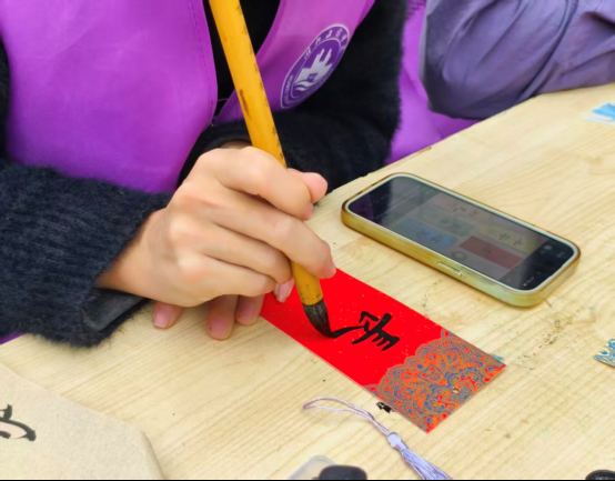 游园活动内容丰富、形式多样。投壶、套圈等传统游戏体验区排起长队,同学们在竞技中感受古人雅趣;书画社同学现场挥毫泼墨,书写定制书签,将墨香与书香融为一体;诗词接龙环节更是高潮迭起,同学们即兴对接、你来我往,展现了不俗的诗词储备与文化底蕴。游园会期间还穿插了三轮幸运大抽奖,现场气氛热烈、掌声不断。