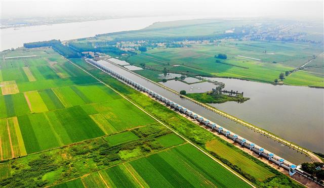 2020年7月3日,鸟瞰荆江分洪工程。来源:湖北日报 视界网 黄志刚 摄