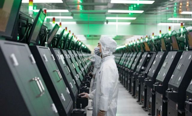10月11日,鄂州市葛店开发区,技术人员在湖北三安光电有限公司洁净生产车间内忙碌。(湖北日报全媒记者 薛婷 通讯员 曾辉 摄)