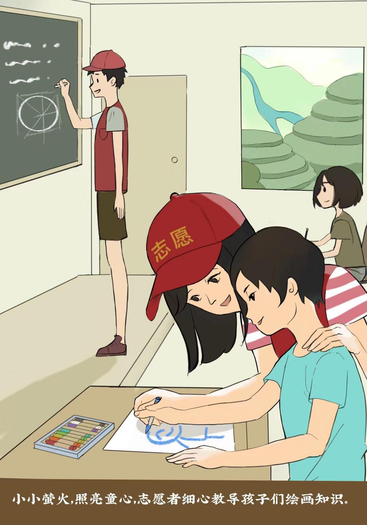 用美育抚慰孩子心灵。艺术活动可以有效改善儿童心理问题,艺术是审美,不是冷冰冰的说教,可以直达孩子心灵。2013年湖北美术学院成立晨曦志愿者团队,致力于开展暑假美育志愿活动,足迹遍布数十省市,为数十万留守儿童送去艺术萌芽的种子。