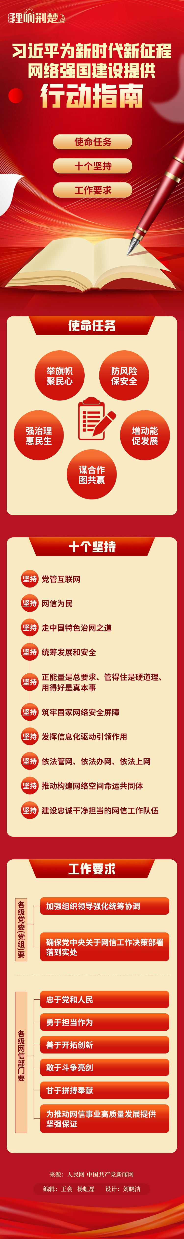 习近平总书记近日对网络安全和信息化工作作出重要指示,鲜明提出网信工作“举旗帜聚民心、防风险保安全、强治理惠民生、增动能促发展、谋合作图共赢”的使命任务,明确“十个坚持”重要原则,并对网信工作提出要求,为新时代新征程网络强国建设提供了行动指南。
