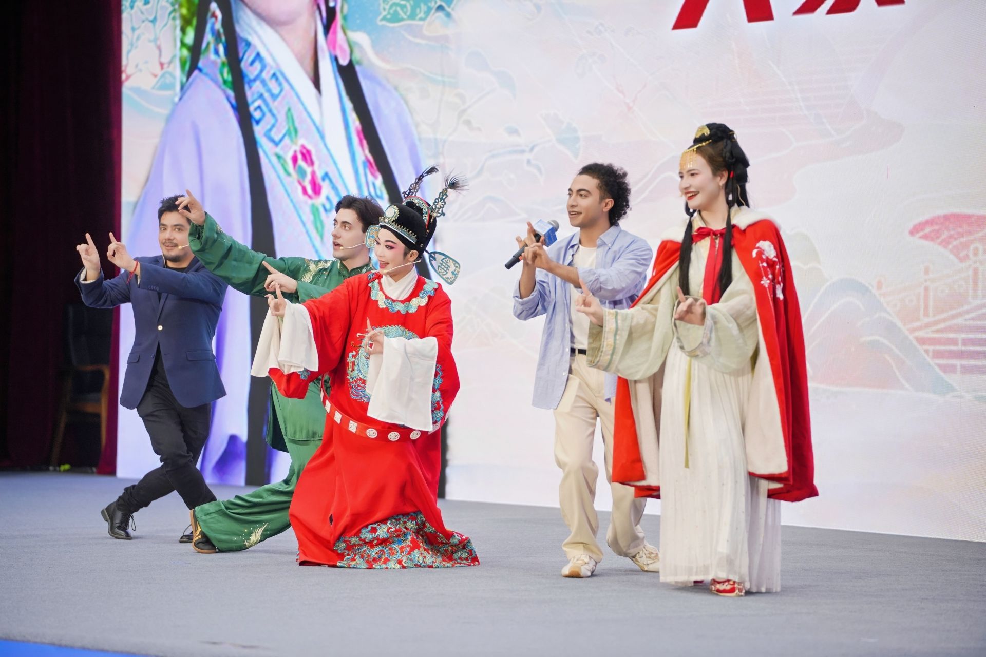 青春作伴 “桥”见世界。在黄梅戏现场教学与访谈《我为什么“爱上湖北”》中,来自智利、土库曼斯坦、埃及、巴西的留学生与黄梅戏教师刘莎妲同台互动。留学生们字正腔圆地吟唱“树上的鸟儿成双对”,以多语种传播《女驸马》的传奇,成为文化国际传播的青春使者。与此同时,武汉车谷江大女足队员刘艳秋在主题分享《冲出亚洲,走向世界》中,以“铿锵玫瑰”的英姿诠释了与戏曲艺术异曲同工的拼搏精神——戏台上千锤百炼的身段,恰如赛场上万次磨砺的射门。当朗诵《青春》与RAP《不屈的信仰》交响,传统与现代共鸣,文化与国际相融,青春在文明互鉴中绽放绚丽光彩。