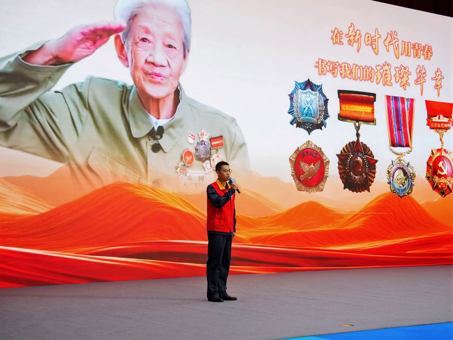 青春勇行“承”志山河。在主题分享《不朽丰碑上甘岭》中,英雄王清珍的形象熠熠生辉。年仅17岁的她,在炮火连天的战场上以超越生命的勇气救护伤员,用柔肩担起使命,诠释了“人民至上”的初心。她的故事成为电影《上甘岭》中王兰的原型,更被习近平总书记深情铭记,铸就了跨越时代的精神丰碑。昔日前辈以热血回答“为何而战”,今日青年则以行动回应“何以报国”。三尺讲台上,乡村教师点亮希望;社区网格中,青年社工编织温暖;西部计划里,志愿者播撒汗水。时代虽异,精神同源。每一代青年都有自己的“战场”,而答案始终如一,便是以行动诠释信仰,用奋斗书写忠诚!