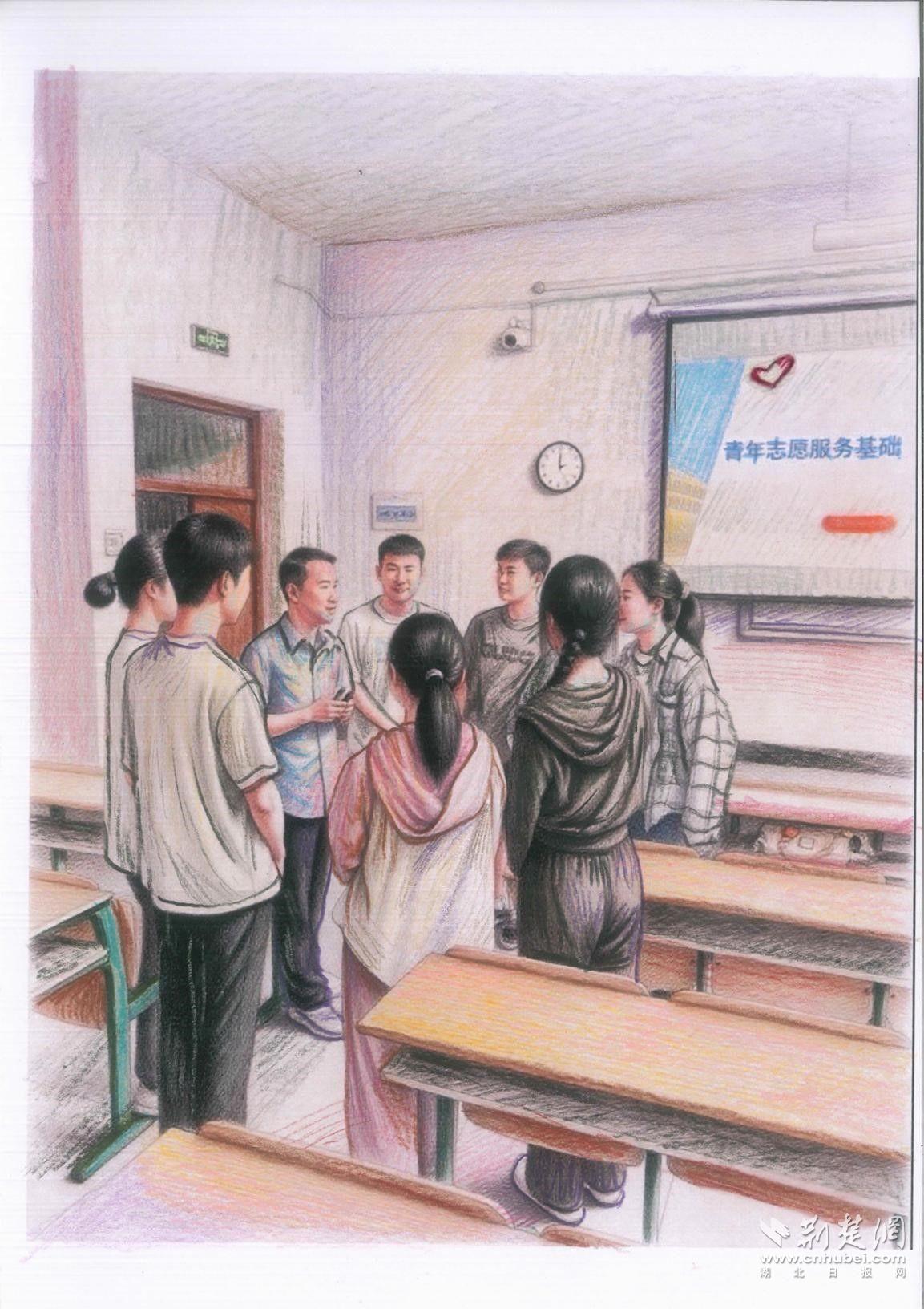 图3:2024年10月,湖北美术学院青年思政课教师杜鹃为大学生志愿者开展“画说马克思”课程思政教学活动指导。