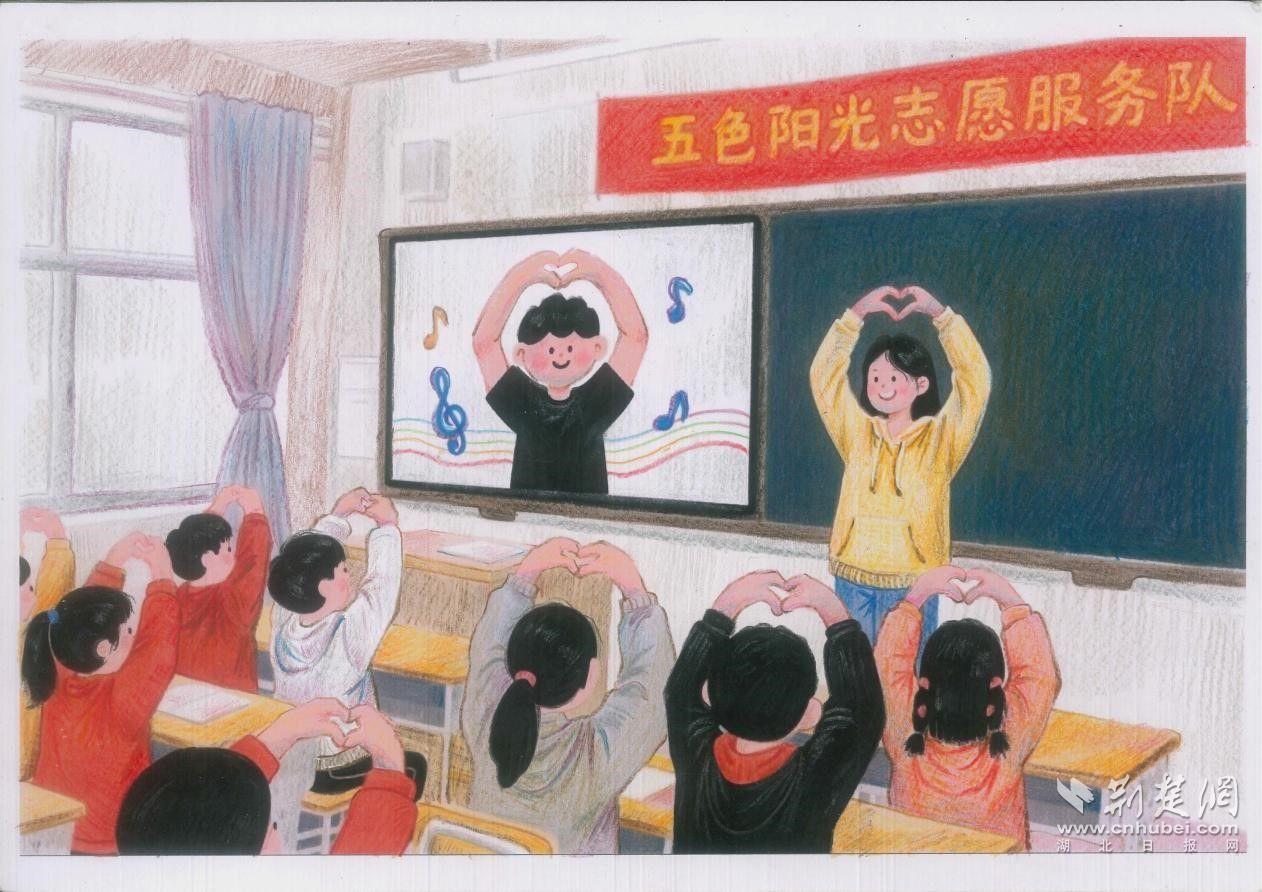 图8:2024年10月,武汉设计工程学院五色阳光志愿服务队的志愿者为乡村小学的孩子们带来音乐的律动。