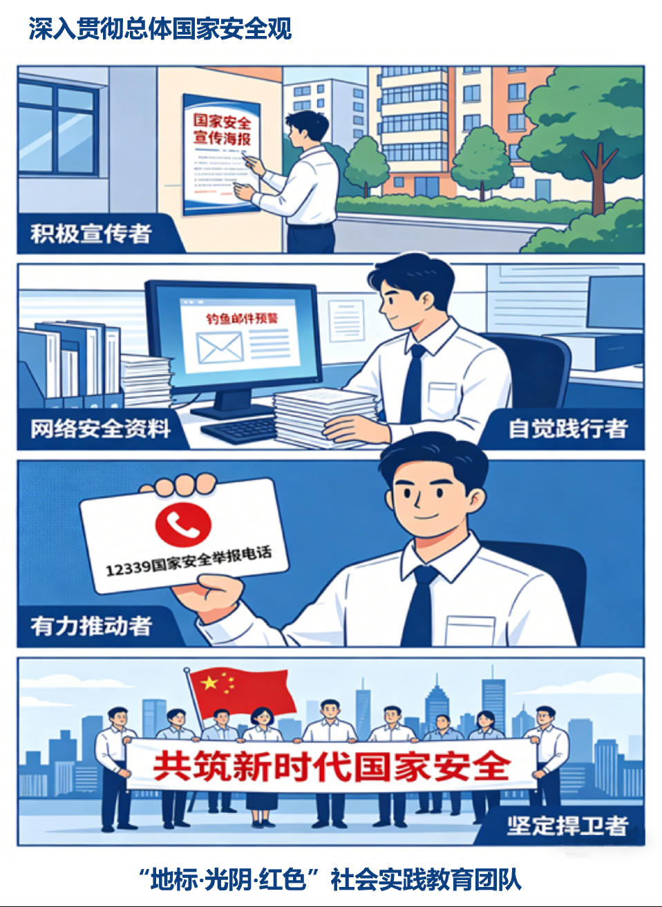 国家安全是安邦定国的基石,是人民安居乐业的根本保障,与每个人的生活息息相关。新时代青年要争做维护国家安全的积极宣传者、自觉践行者、有力推动者、坚定捍卫者,共筑新时代国家安全。