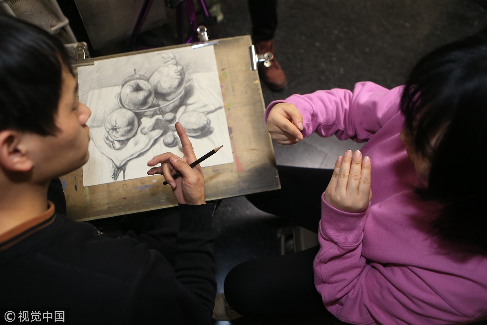 梦想如何照亮未来?今年34岁的许微笑和丈夫都是聋哑人,却用一间苦心经营了3年的画室作出了最漂亮的回答——在他们的培养下,上百名“无声孩子”从这里圆了艺术梦。(图片来源:视觉中国)