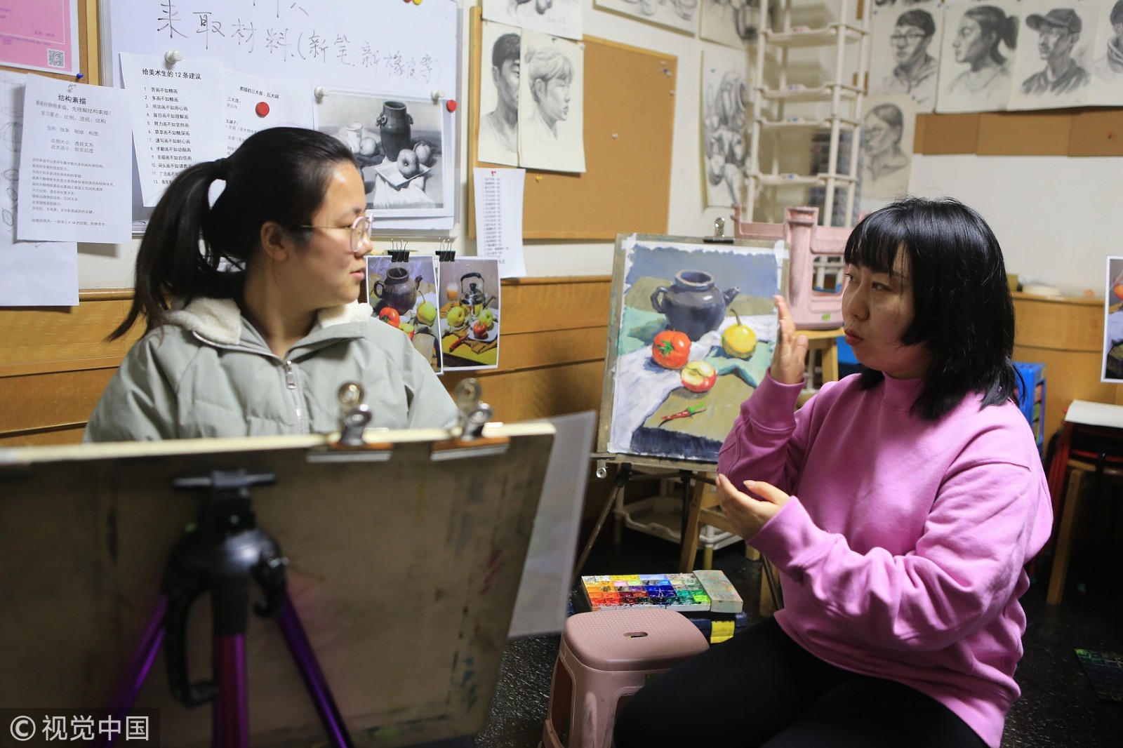 2016年,画室成立。好多家长听说有这样的聋哑美术老师后,都带着自己的孩子来求学。有的外地学生往返西安路途遥远,有的家庭经济拮据,许微笑就买来钢丝床,让孩子晚上睡觉。“3年来,30个聋哑孩子考上了大学。”许微笑给记者写了一句话,“一定将画室办下去,让每个人都能凭自己的双手,立足社会。”