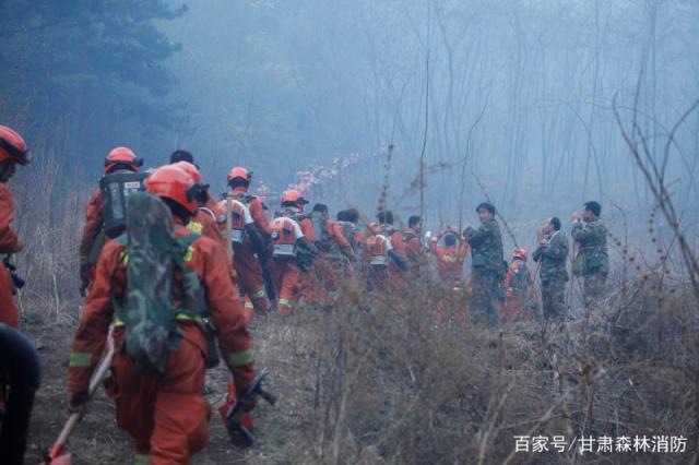 4月5日下午13时40分,陕西韩城市桑树坪镇雷寺庄林场发生火灾。经部署,协调甘肃森林消防队员300余人、渭南武警支队100余人,韩城参加扑救人员共计1200余人。图为7日,甘肃省森林消防总队增援分队在陕西省韩城市雷寺庄森林火灾现场担负增援扑救任务,指战员连续奋战近十二个小时后,火势终得到缓解。(图片来源:@中国新闻社、陕西网、甘肃森林消防)