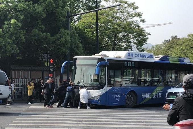 “旁边的人跟我说,有个老奶奶被压在车底下了,他们想把车抬起来。”尤女士告诉记者。当时推车的有十来个人,路边还有不少人跑过来。但公交车实在太重了,虽然大家都使出了吃奶的劲,但车子还是没能被抬起来。