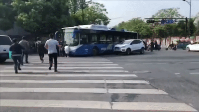 尤女士在附近的一家培训机构上班,早上9点左右,她步行经过事发地时,看到路口一下子围了很多人。“起码有四五十个人吧,然后那边有辆公交车停在路口,一圈人围在车旁边。”当时尤女士还不知道发生了什么事,走近一看才发现,原来那群人竟是在抬车。