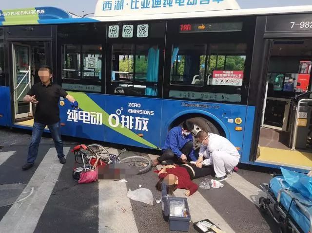 17日上午9点不到,在浙江省杭州市文三西路紫荆花路口,一辆180路公交车与一辆自行车相撞。当时骑车的是位老奶奶。