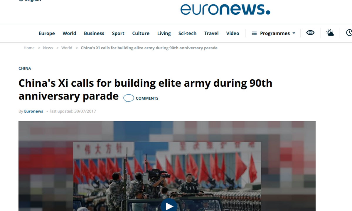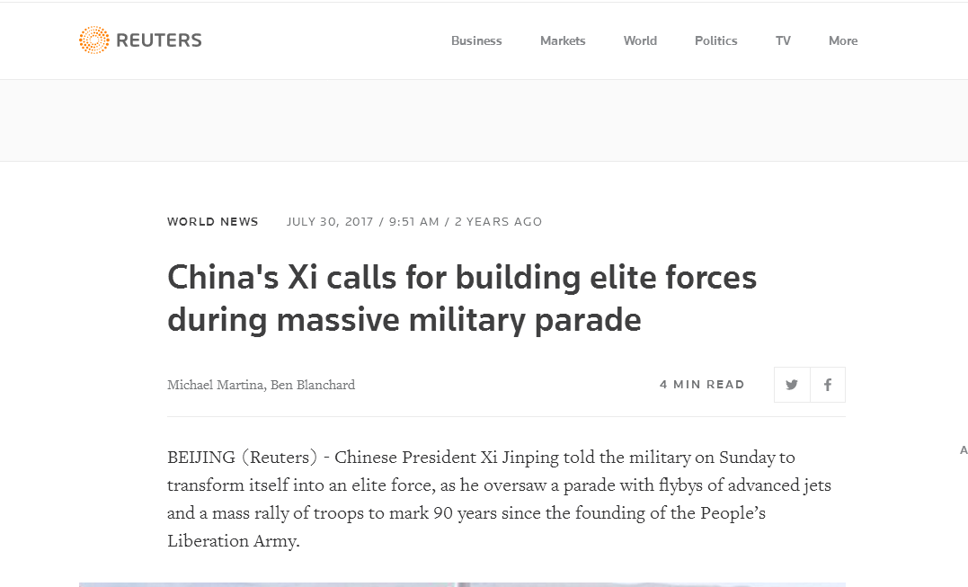 2017年7月30日上午9时,庆祝中国人民解放军建军90周年阅兵式在朱日和训练基地举行,这是新中国成立以来解放军首次在八一建军节开展阅兵式活动,其最大的特色就是突出“实战”,不安排徒步方队和踢正步,所有装备都以实战状态接受检阅。