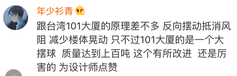 “平时没啥用,关键能救命”、“不明觉厉”、“这个大家伙是擎天柱吗?”、“定海神针!”……该阻尼器上线当天便强势收割一波网友称赞,在狂风肆虐的日子中,给了大家足足的安全感。