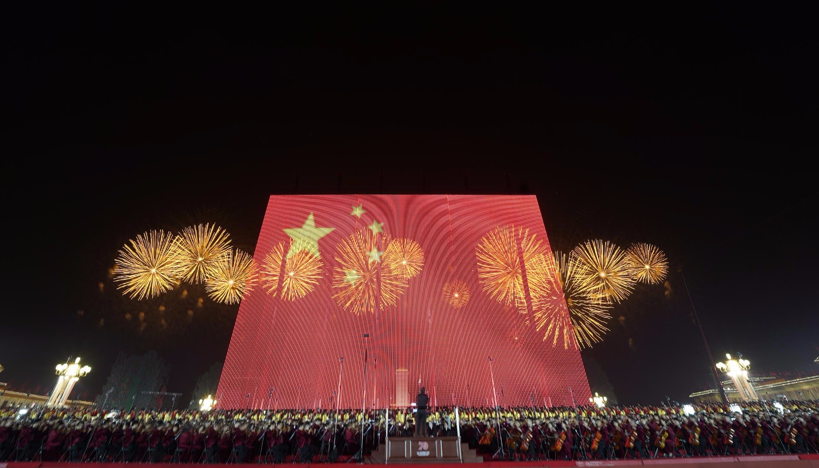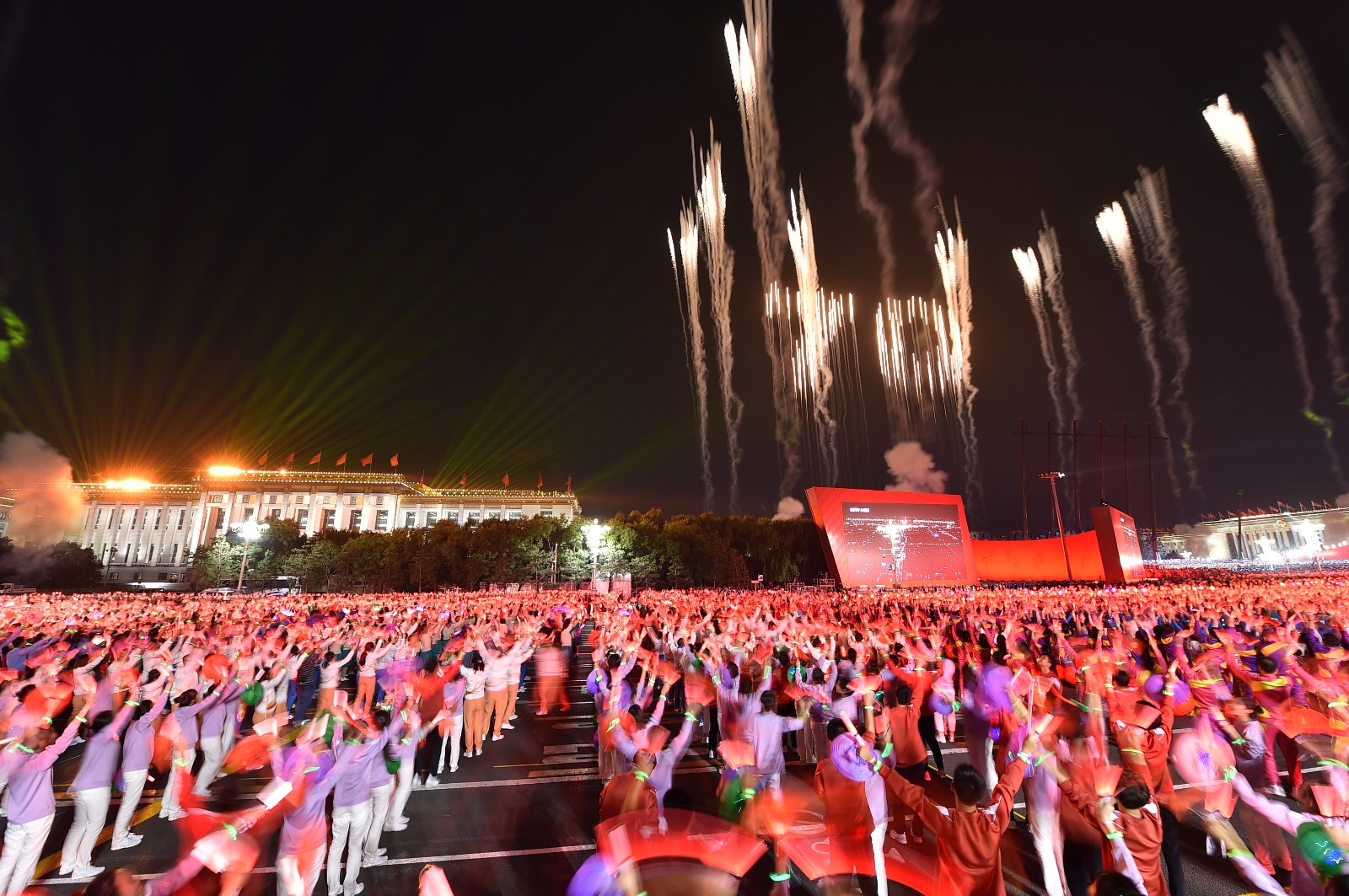10月1日晚,庆祝中华人民共和国成立70周年联欢活动在北京天安门广场举行。这是联欢活动现场。