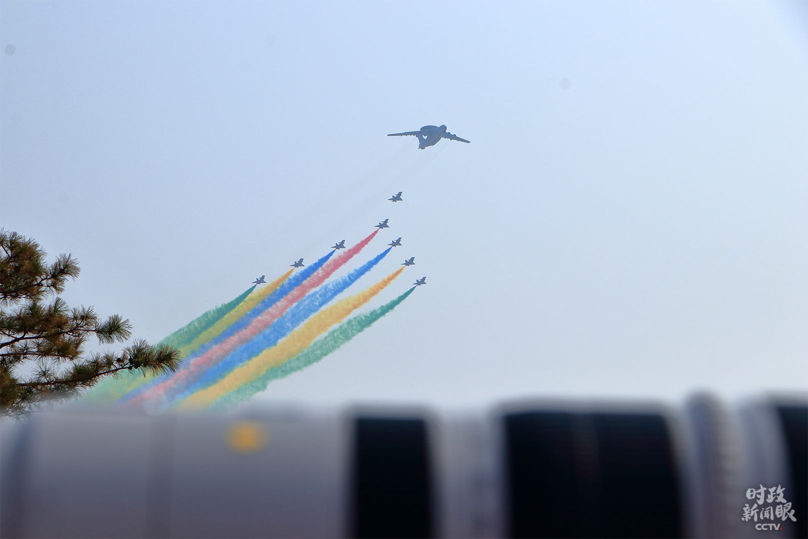 △领队机梯队拉出7道彩烟,开启了空中梯队的帷幕。(央视记者李峻拍摄)