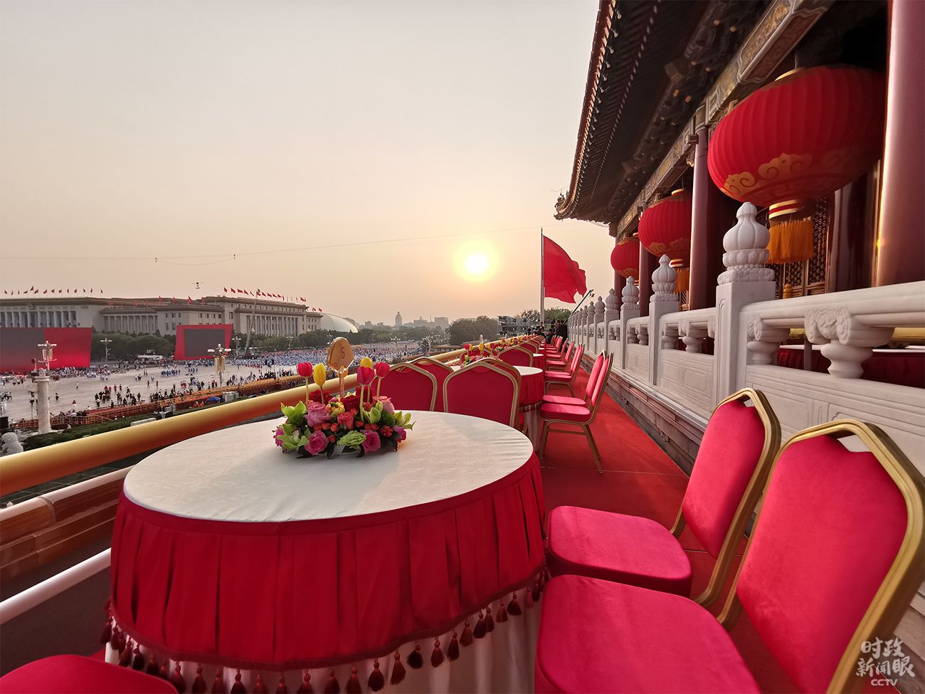 △演出开始前的天安门城楼。(央视记者张庆拍摄)