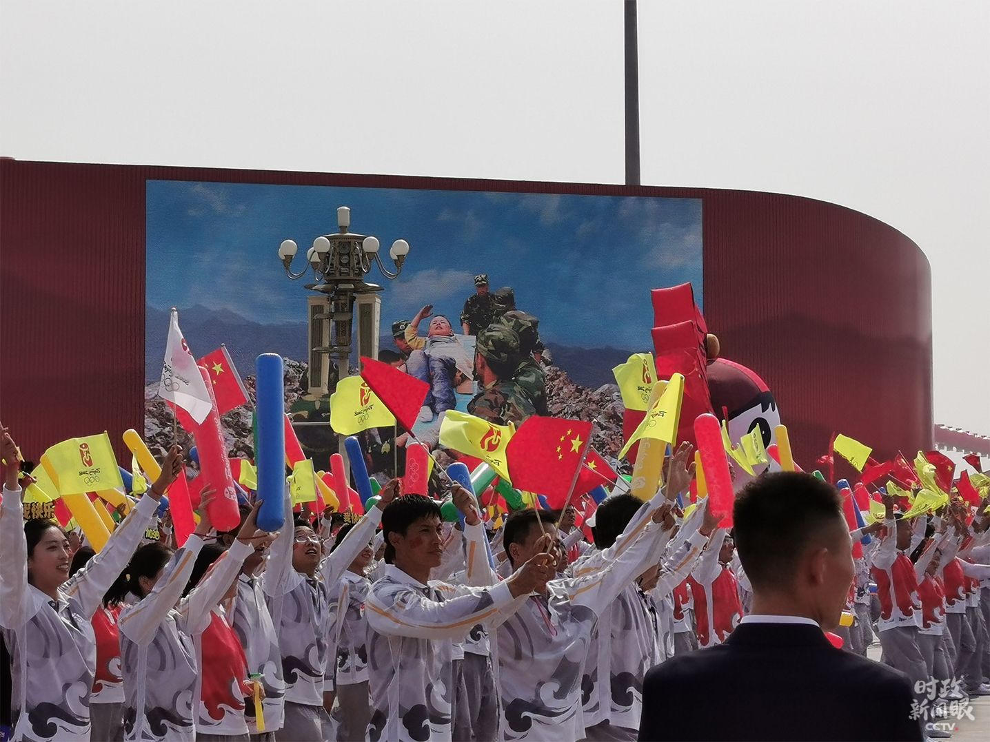 △巨幅国旗闪耀广场中央。(央视记者段德文拍摄)