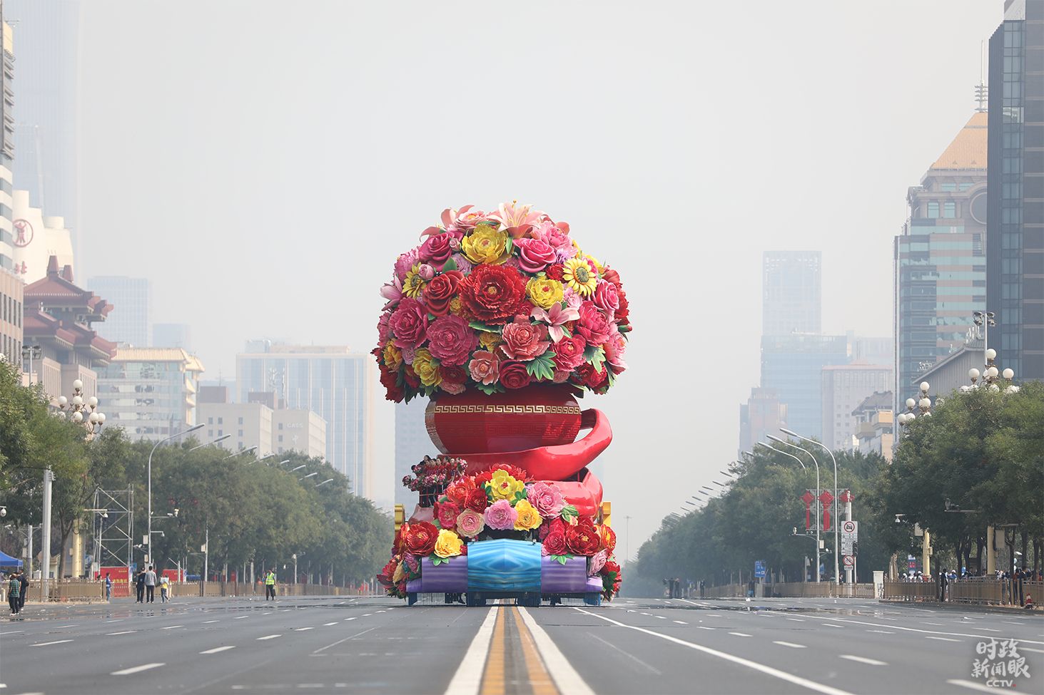 △这是“祖国万岁”彩车正在入场。(央视记者魏帮军拍摄)