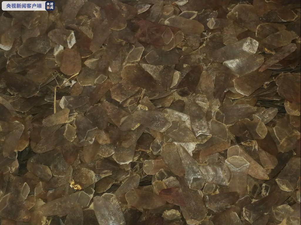 温州市公安局治安支队二大队大队长 陈凌:装姜片的麻袋堆积在外部,穿山甲鳞片他是放在集装箱中部偏后部的位置,整个用姜片把它包起来,我们如果采取这种秘密抽检的方式肯定是一下子查不到。