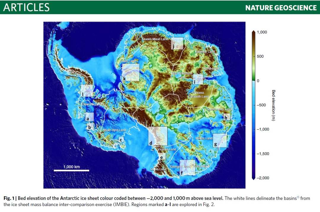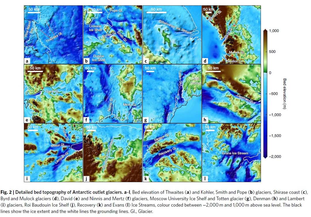 南极冰川详细河床信息,图h代表登曼冰川所在地 《自然·地球科学》 图