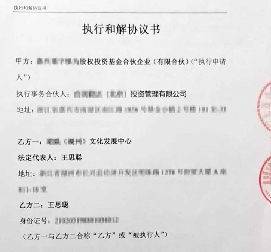 某股权投资基金合伙企业(有限合伙)申请执行某文化发展中心、王思聪仲裁纠纷一案已在北京二中院和解解决,申请执行人已于2019年12月23日向二中院提交解除查封、冻结、限制消费措施的申请,二中院将对该案作结案处理,并陆续解除对被执行人王思聪采取的执行措施。