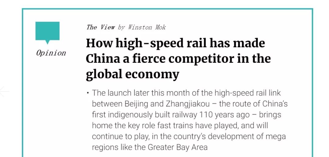 京张高铁开通之际,《南华早报》写下一篇评论文章称: