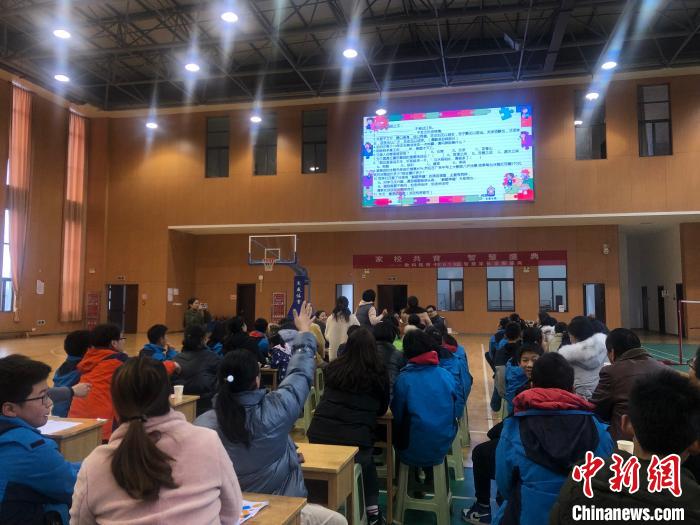 中新网常州1月19日电 (记者 唐娟)18日,是2020年中小学寒假的第一天,在江苏常州教科院附中的体育馆内,一场特别的考试正在紧张进行,考生是爸妈,出题人是自己的娃,考题是孩子们一学期语、数、地理、生物大综合,在角色的互换中,“孩子们眼中的父母”令家长动容,教育的话题引发家长深思。