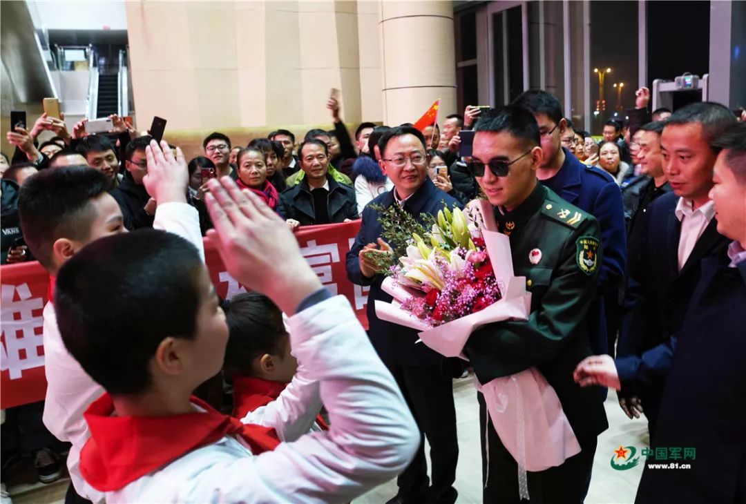 △杜富国负伤后第一次踏上家乡的土地,父老乡亲们用最高的礼遇迎接他回家。
