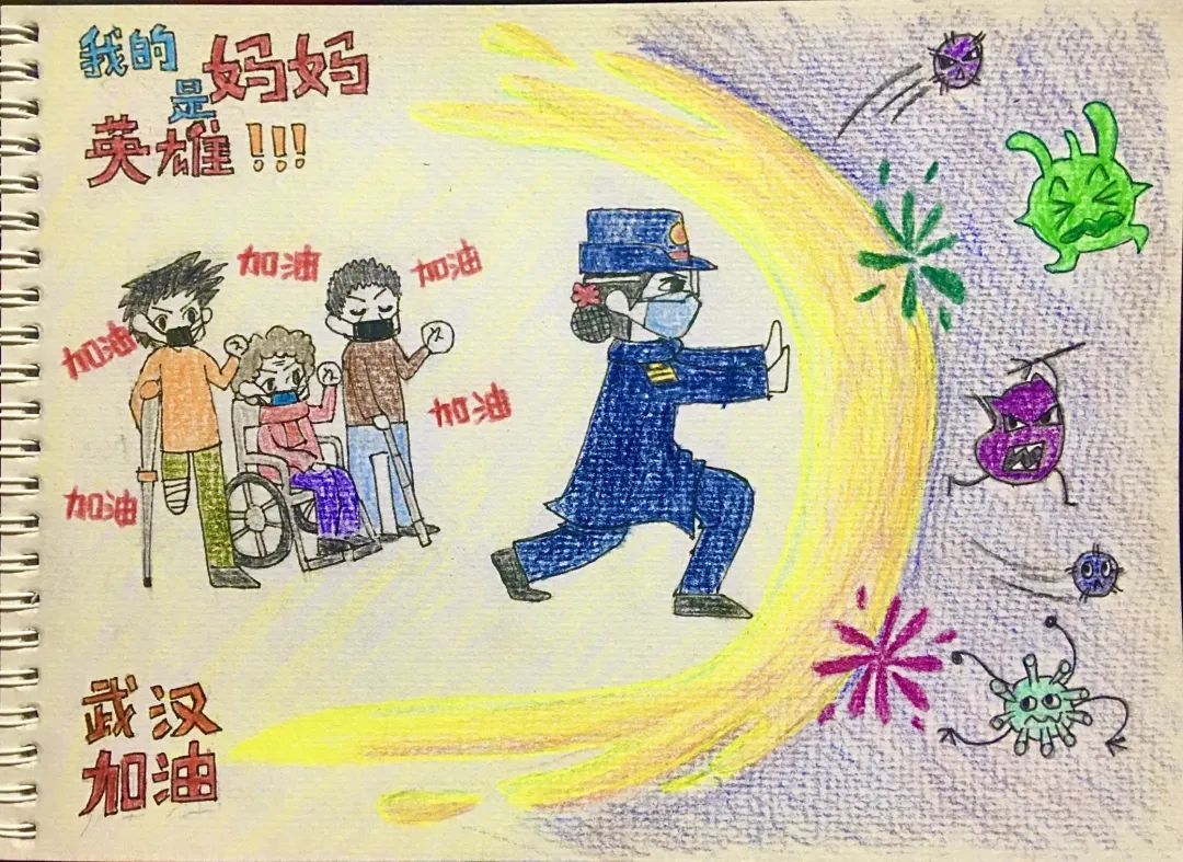 我觉得妈妈是一个坚强勇敢的人,什么事也不怕,这次的病毒也不怕,她始终用乐观向上的精神去生活,去工作。我为妈妈感到自豪,她是我心中的英雄,就像我在画里画的那样。