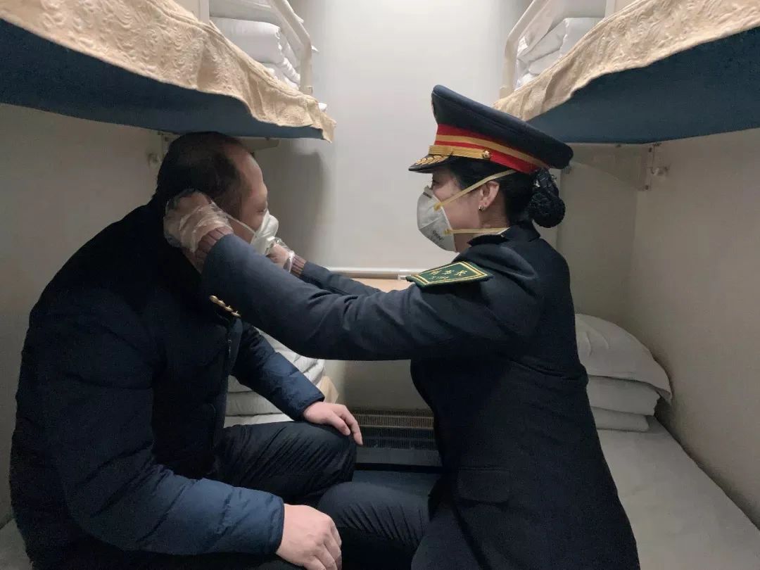 2月3日,宁乐与家人告别,参战南宁车队乘务班组,踏上出征战疫旅途。一路上,宁乐严格按照段里制定的消毒制度,对车门扶手、洗面间、窗框、小桌、卧铺围栏等旅客易触及的地方,不间断地进行消杀,认真做好每一名旅客体温测量和旅途信息填报,确保每一名旅客安全出行。