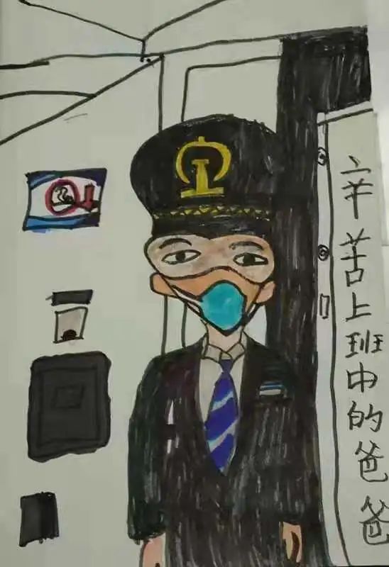2月20日晚上,潘剑值乘的Z288次列车运行在怀化至株洲间,他一边给怀化站上车的旅客测量体温,一边组织各车厢进行喷洒消毒。一直忙碌到休息时,他才有余暇打开手机看爱人发来的信息。里面是女儿辰辰画的一幅画,她语音留言道:“爸爸,这是送给你的礼物。”画里戴口罩的小女孩在认真洗手,有几个表情凶狠的冠状病毒飘在空中,还有一名身穿战袍的将军拿着针筒。潘剑又高兴又欣慰,马上语音回复:“谢谢宝贝,爸爸打完怪兽就回来啦!”