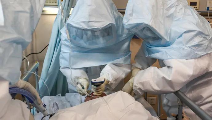 在与病毒“贴面”搏斗时,医生们要穿上防护服和两层隔离衣,戴上N95口罩和外科口罩,然后再戴上防护面屏和全面型面罩。但即便如此,依然面临着巨大的风险。