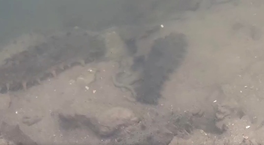 “清塘”,可以说是海参养殖过程中一个必要环节,最普遍的方式是把塘底淤泥翻一遍,再通过长时间暴晒的方式,将淤泥里的有害生物杀死。